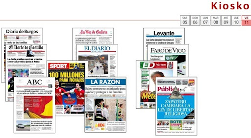 Gracias a Kiosko podemos acceder a la portada de la mayoría de periódicos de España y consultar sus titulares.